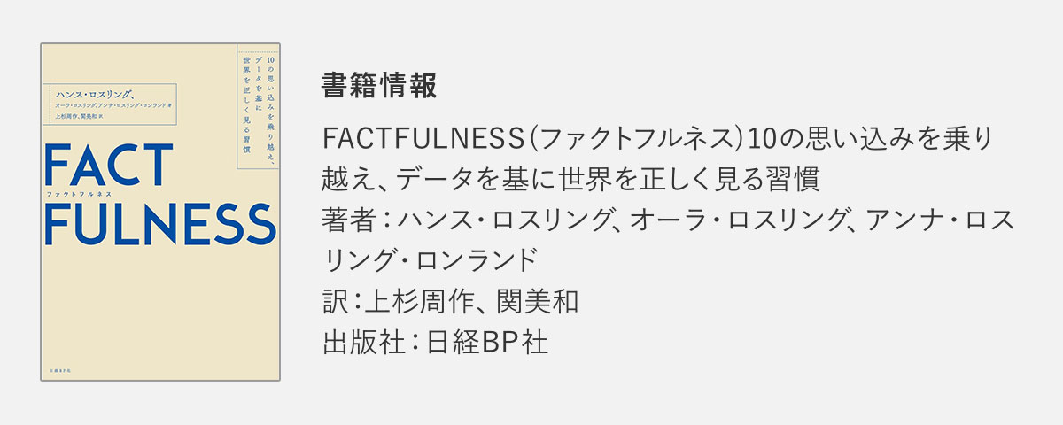 もちろん、本書は「未来は思うよりも明るい」と言うためだけの本ではありません。「なぜ、人々は『世の中は悪くなっている』と思い込むのか」を考察し、データを基に世界を正しく見る習慣について記しています。例えば、「数字を一人ぼっちにしない」とかね。