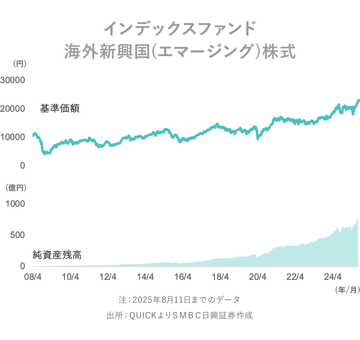 「MSCI エマージング・マーケット・インデックス」は、MSCI Inc.が開発した株式インデックスで、世界の新興国の株式の総合投資収益を各市場の時価総額比率で加重平均し、指数化したものです。
