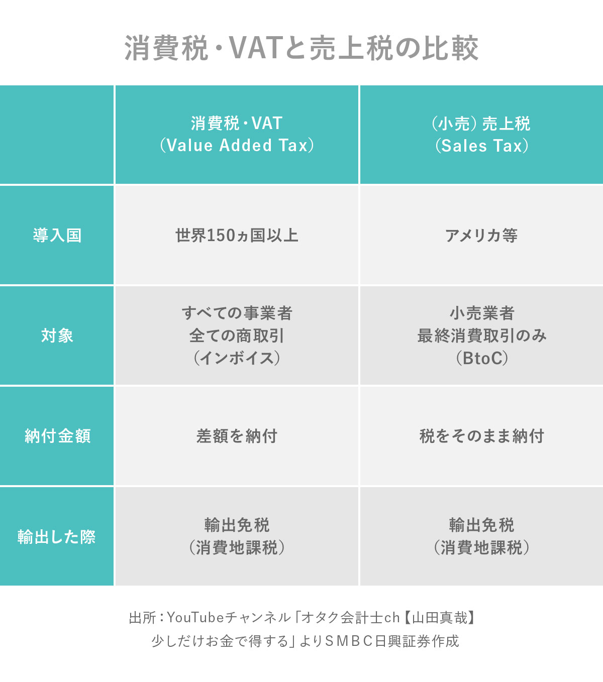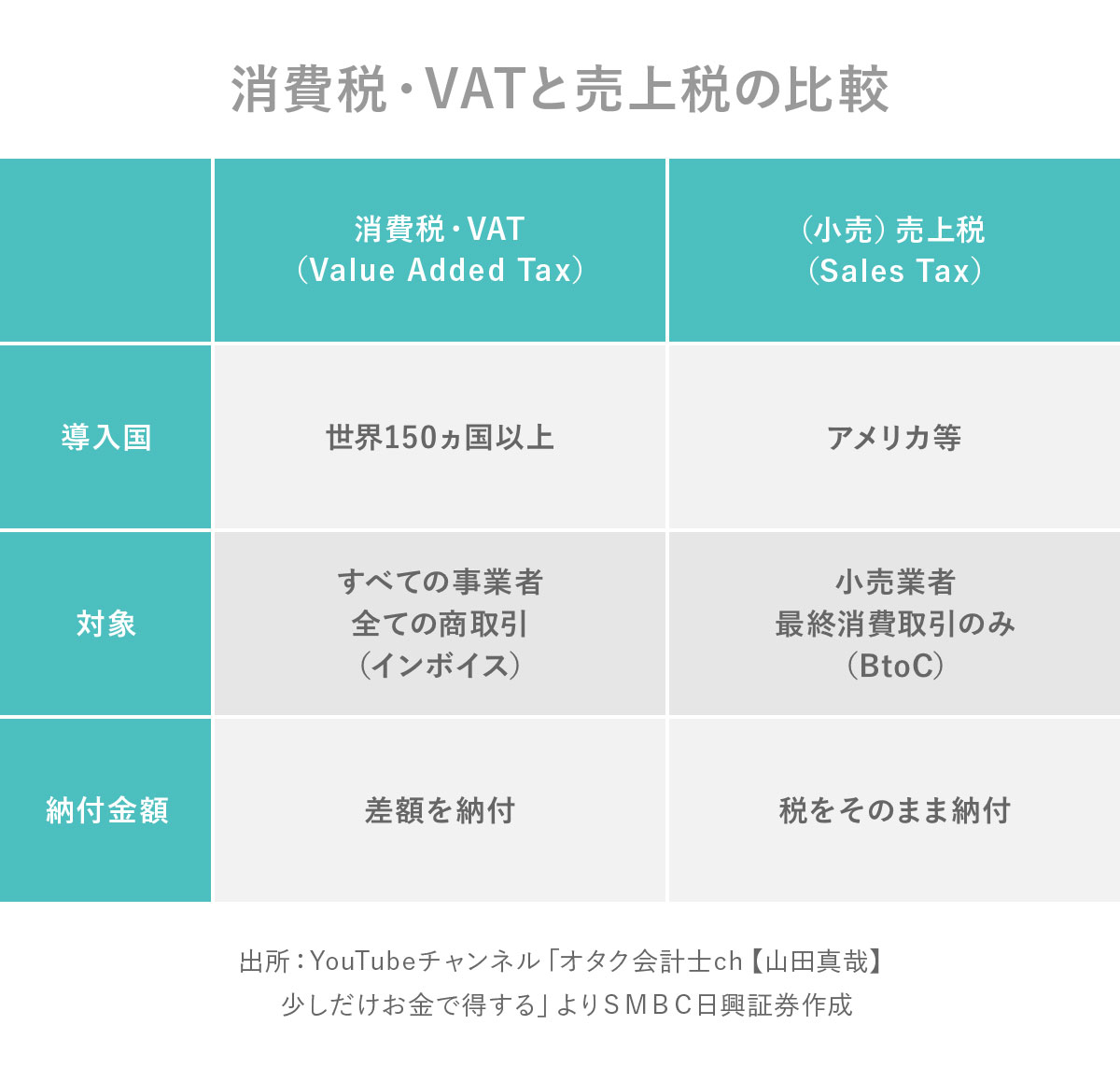 注:世界各国には消費税と似たVAT(付加価値税・Value Added Tax)があります。従来、日本の消費税と各国のVATは異なるという認識が持たれていましたが、その大きな違いはインボイス方式の有無でした。現在は日本もインボイス方式に変わりましたので、ほぼ同じ制度という前提で解説します。