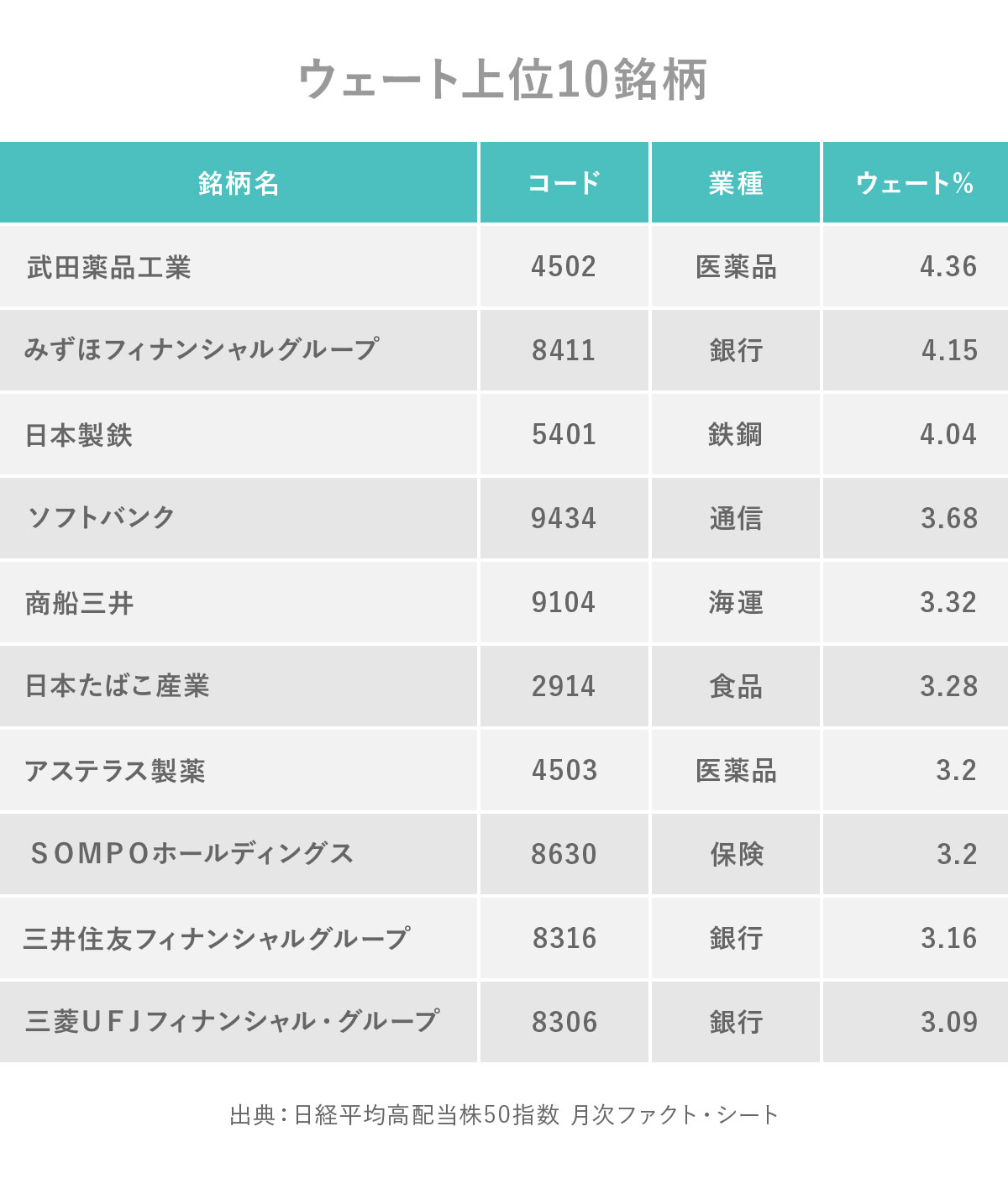 ウエート上位10銘柄はこちらの通りです。金融株が多いのは、前回ご紹介した「