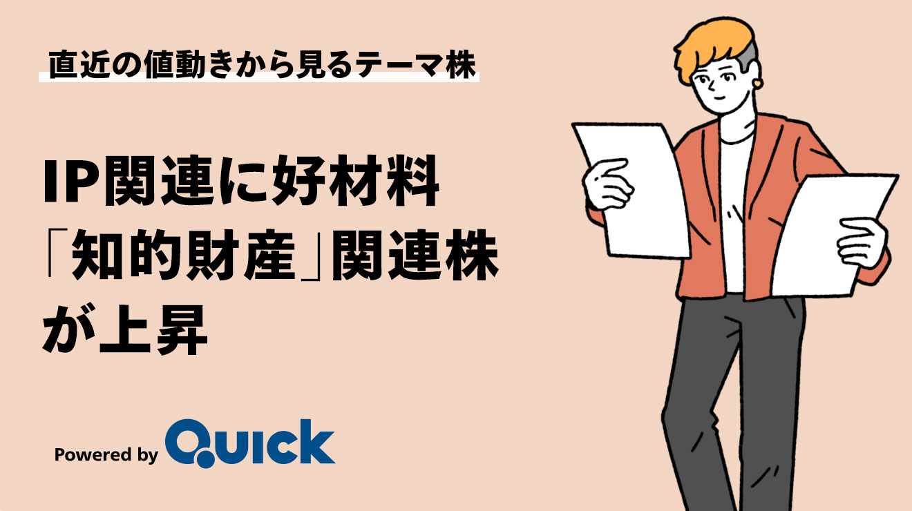 株式市場で「知的財産(IP)」関連株が買われています。QUICKが選定する関連株の平均上昇率は4.1%と、東証株価指数(TOPIX、0.5%高)を上回りました(6月20日までの5営業日の騰落)。株価が上昇した5銘柄とその背景について解説します!