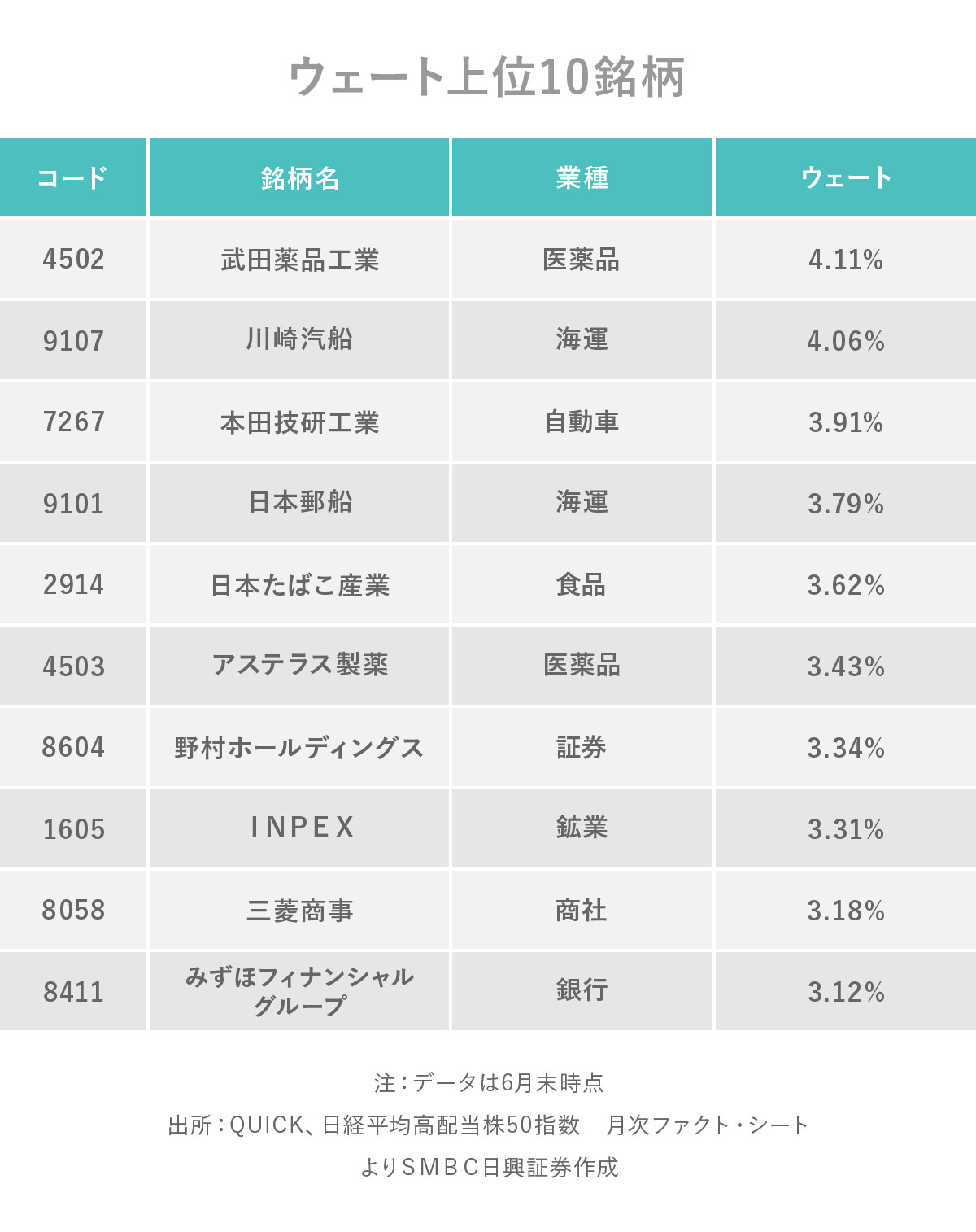 去る6月13日、日本経済新聞社が「日経平均高配当株50指数」の銘柄定期入れ替えを発表しました。皆さんは、以前お話しした日経平均高配当株50指数を覚えていますか? 日経平均株価を構成する225銘柄から配当利回りが高い50銘柄で構成されるものです。日経平均株価と比較して高リターン・低リスクのなかなか優秀な株式指数です。