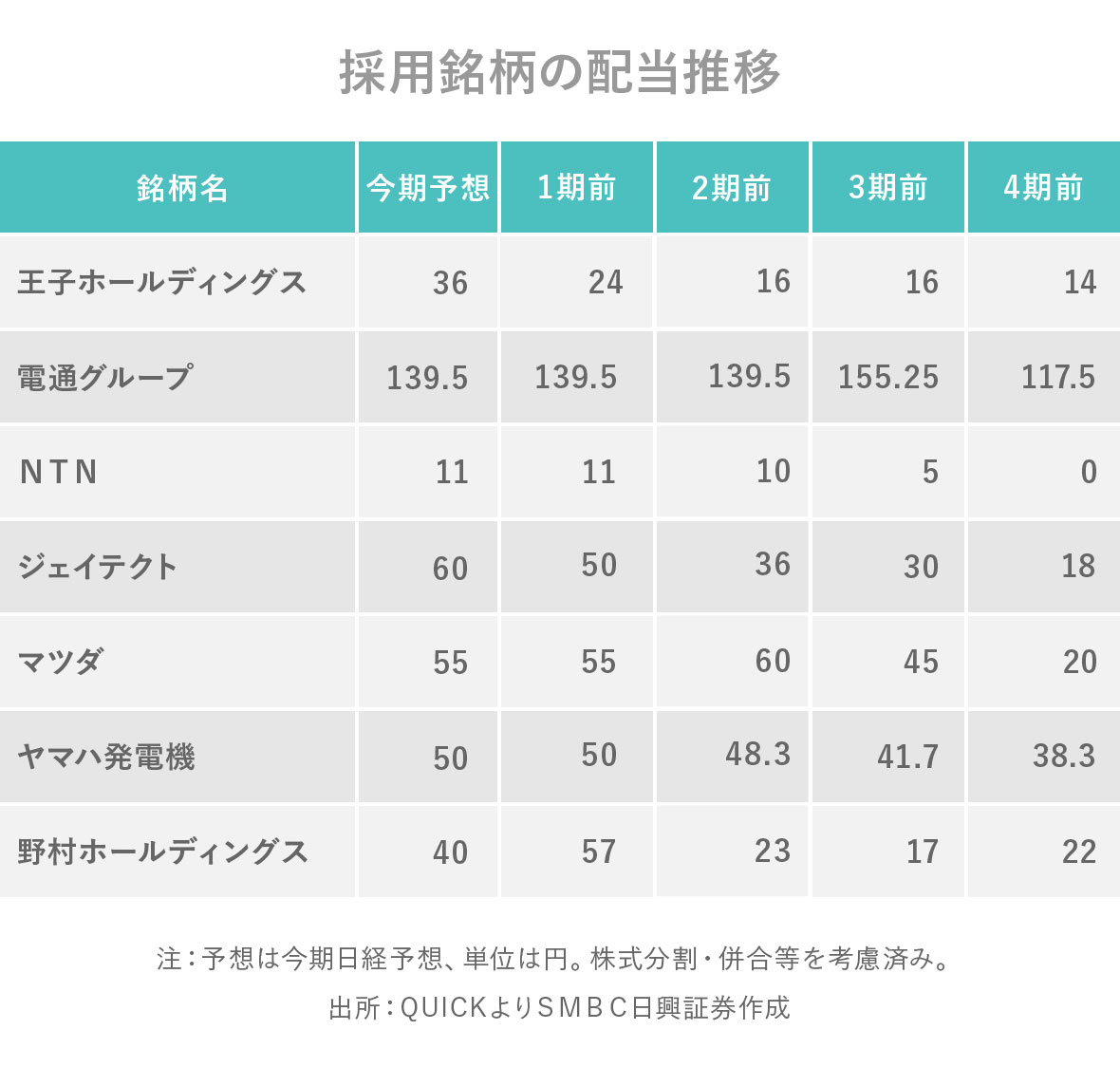 採用銘柄について、1株あたり配当の推移も確認してみました。過去と比較すると、おおむね増配傾向が見えます。