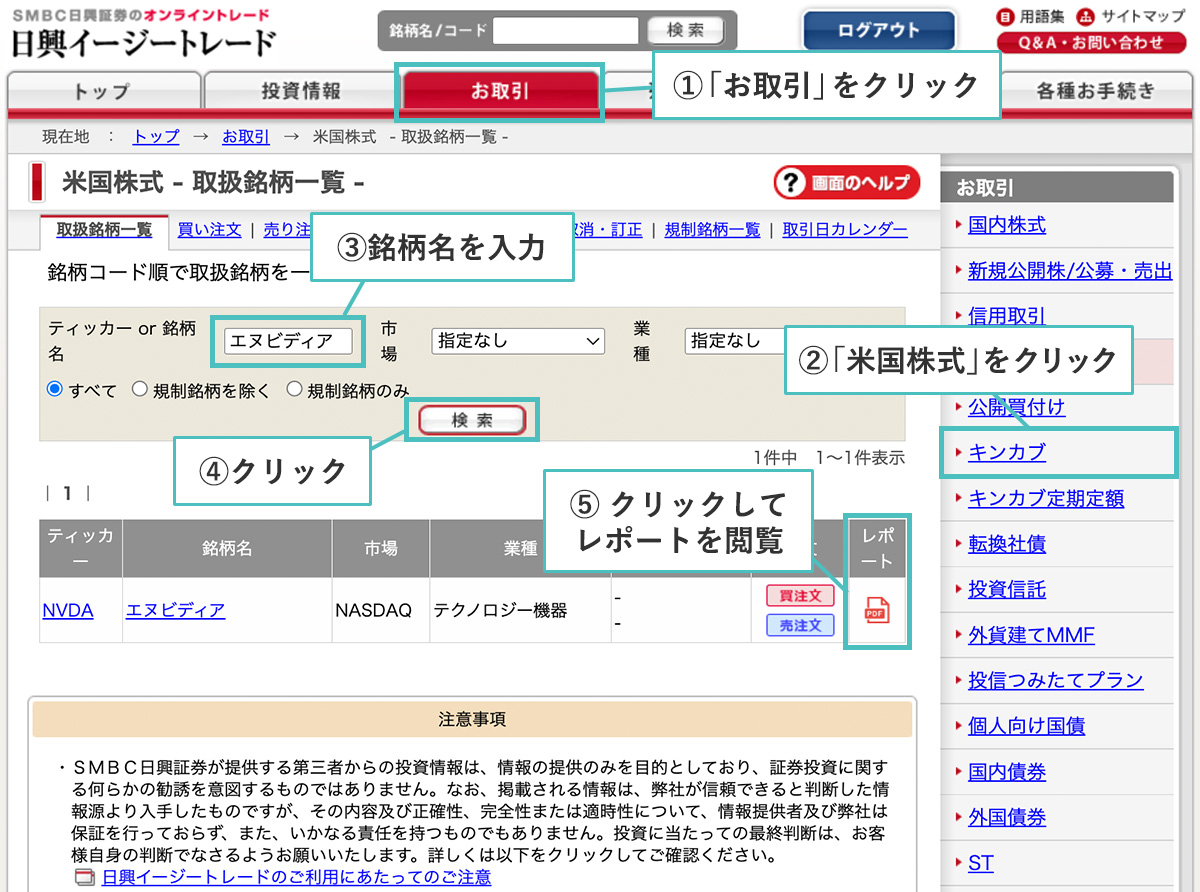 また、日興イージートレードであれば、米国株についてのレポートが充実していて、個別銘柄のレポートを無料で読むことができますよ。