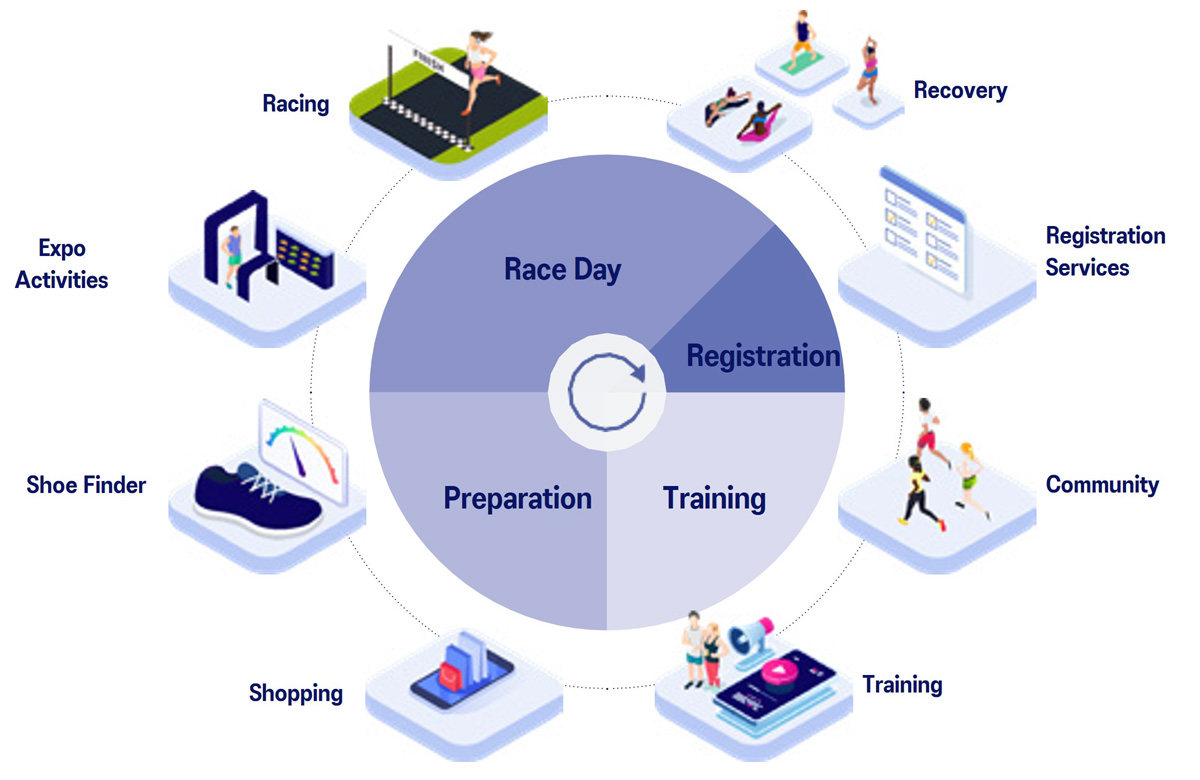 同社は経営の重点戦略の1つとして「ブランド体験価値向上」を掲げ、顧客との直接的な接点を増やし、顧客が体験し、価値を感じてもらうためのシステム「ランニングエコシステム」を顧客へ提供しています。顧客は「OneASICS(ワンアシックス)」会員となることで、ECサイトでの購入データや日常的なランニングデータ、ランニングレース登録データなどを一元的に管理することができます。