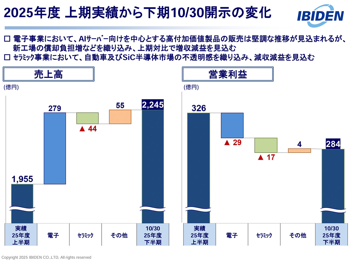 イビデン 2025年度2Q決算資料より