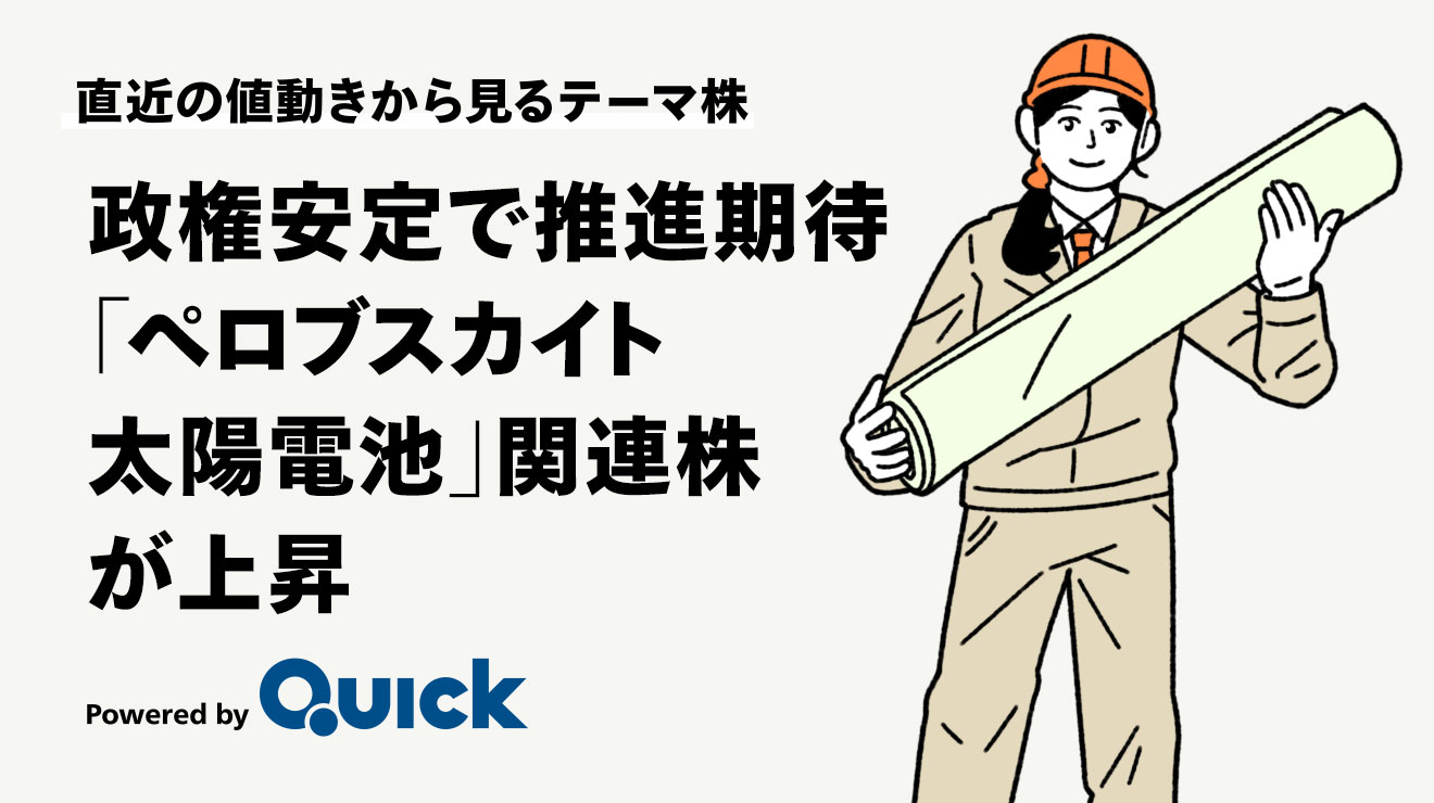 株式市場で「ペロブスカイト太陽電池」関連株が買われています。QUICKが選定する関連銘柄の平均上昇率は8.0%と、東証株価指数(TOPIX、3.7%)を大きく上回りました(2月6日までの5営業日の騰落)。株価が上昇した5銘柄とその背景について解説します!