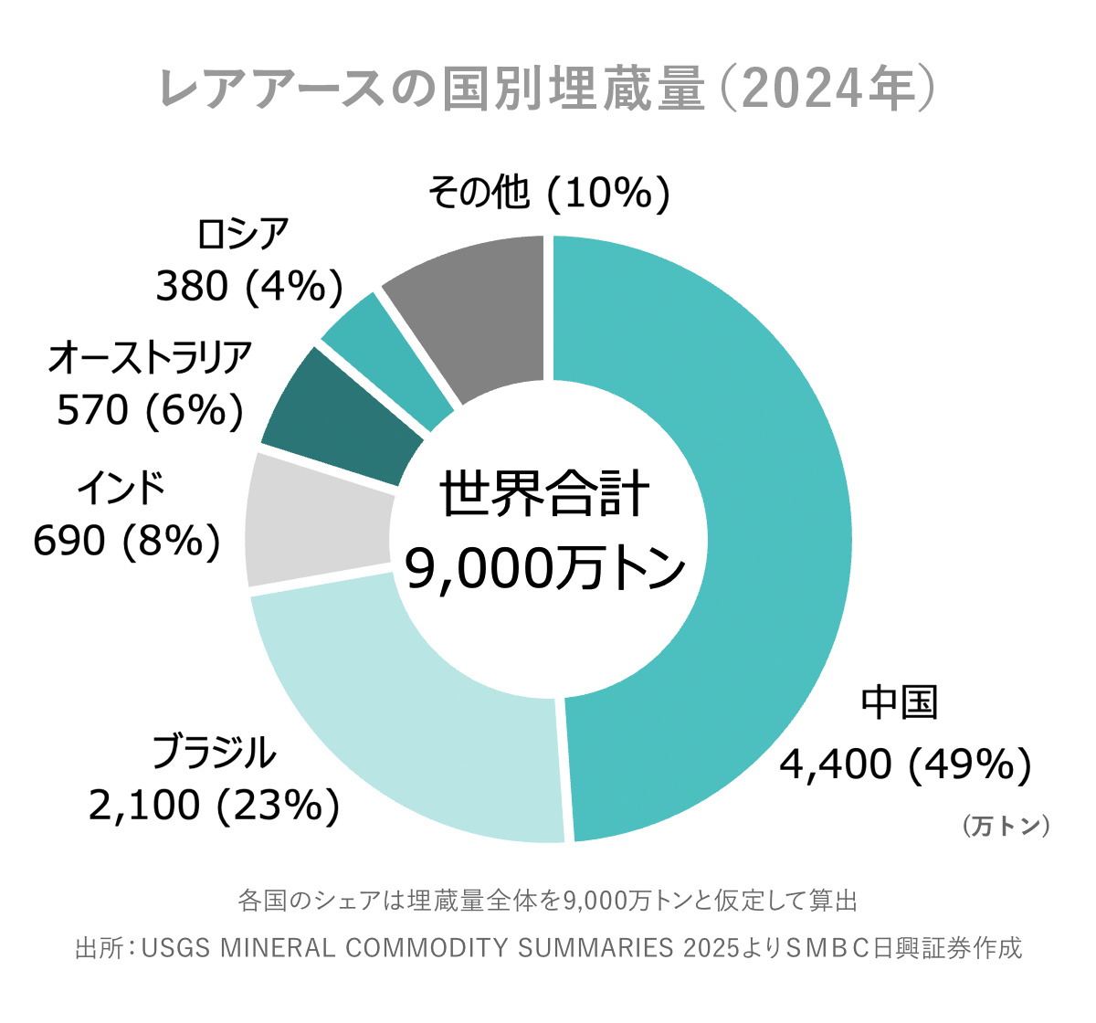 レアアースはパソコンや自動車、高性能兵器、最先端の半導体など、現代社会にて不可欠な先端技術に使われています。米国地質調査局、国際エネルギー機関によると、2024年時点で、世界のレアアース採掘の約70%、精製の約90%を中国が請け負っています。中国の輸出制限や地政学的リスクなどにより、レアアースの供給が中国に偏っているリスクが認識されるようになりました。
