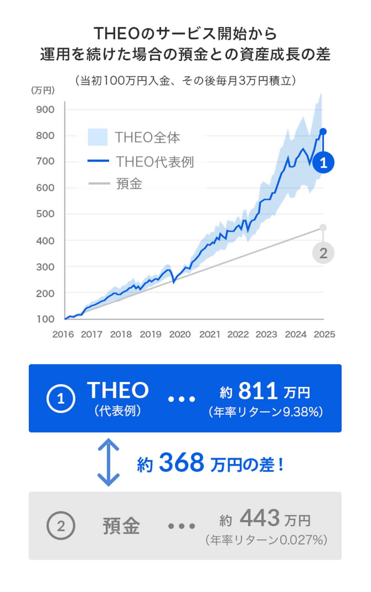 ※THEOでは、お客さま一人ひとりポートフォリオが異なるため、実際の運用実績はお客さま毎に異なります。