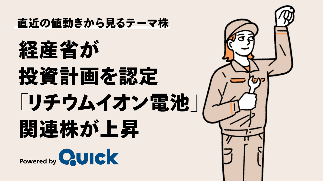 株式市場で「リチウムイオン電池」関連株が買われています。QUICKが選定する関連銘柄の平均上昇率は6.1%と、東証株価指数(TOPIX、2.2%高)を上回りました(2月27日までの5営業日の騰落)。株価が上昇した5銘柄とその背景について解説します!