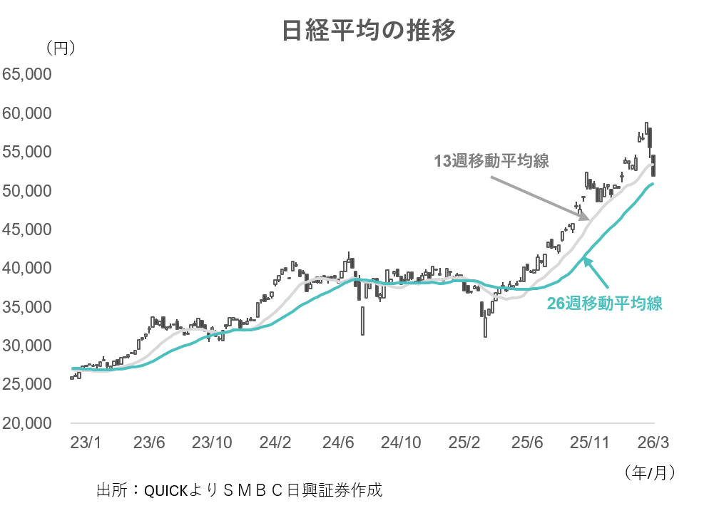 日経平均は26週移動平均が当面の下値目途か