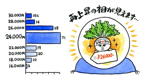 最近は米国のトランプ大統領の貿易関税の発言などにより、日経平均株価は一進一退の展開となっています。そんな中、2018年末の株価を予想する設問で最も多かった回答は「2万4000円」でした。しかし、「3万円」と予想する人が10人もいて、平均値は「2万4225円」となりました。これは1月23日につけた今年の高値2万4124円を上回る予想となっており、株価は再び上昇し始めると考えている人も多いようです。